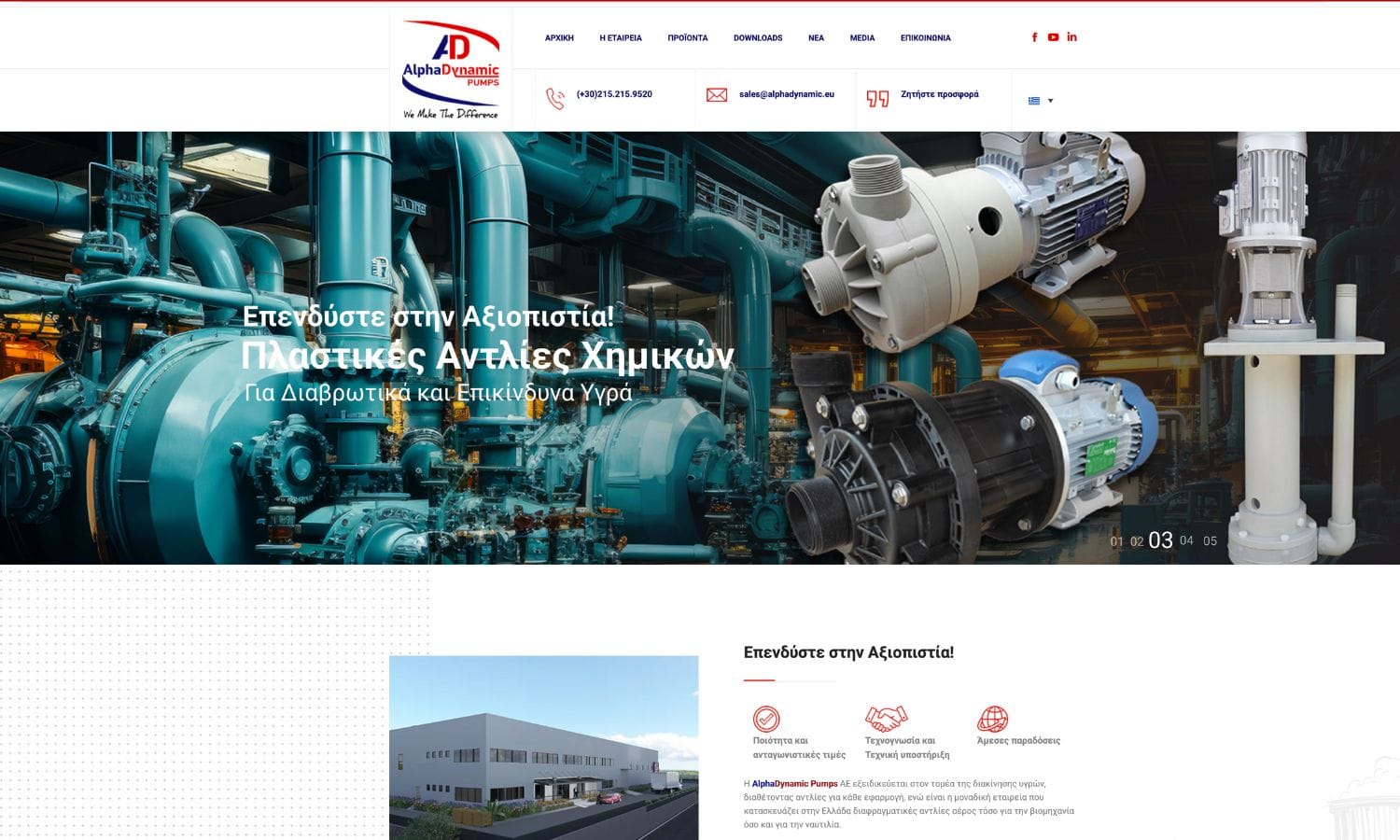 Πελάτης: Alpha Dynamics Pumps, διεθνής ηγέτης στις βιομηχανικές αντλίες, με παρουσία σε 11 χώρες και πελατολόγιο που συμπεριλαμβάνει βαριές βιομηχανίες, ναυτιλιακούς κολοσσούς, ενεργειακούς ομίλους, χημικές μονάδες, food & beverage factories και κάθε sector που απαιτεί αντλίες υψηλής αντοχής και τεχνολογικής ακρίβειας.