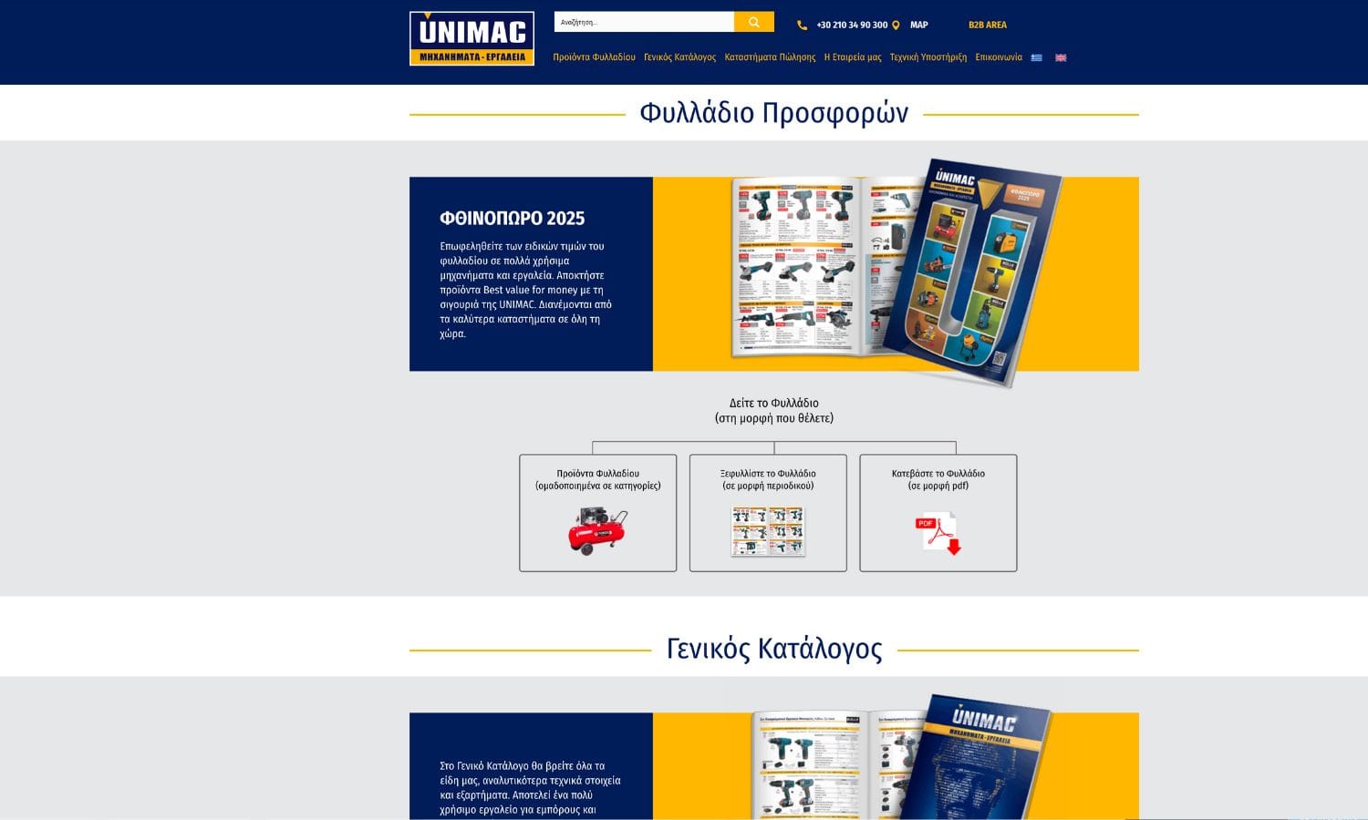 Πελάτης: UNIMAC S.A. — εταιρεία με μακρά πορεία, χιλιάδες προϊόντα, δυναμική παρουσία στην αγορά των εργαλείων και μηχανημάτων.